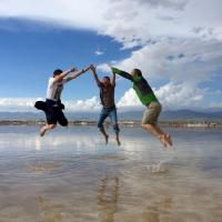茶卡盐湖是一个来了就瞬间秒杀青海湖的景点,服务设施,景点都非常的好,我们来的时候天不是很透,但是依然没有影响景点的美。一直走到湖心,脱鞋下,妈呀!水真的很凉。拍出来的照片,水天一色,太美了。来的时候一定带拖鞋啊!带拖鞋啊!带拖鞋啊!没有带的话,那你就多备点纯净水洗脚,不然,出了水后,你的腿和脚会瞬间备盐覆盖。