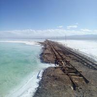 茶卡盐湖如梦如幻。湖水清澈、天空湛蓝、白云淡淡,偶尔小鸟飞过,简直是仙境一般。白茫茫的盐湖中,历史遗留下来的铁轨,延伸到远方,仿佛通往世界的尽头。每年6月前和10月后,是茶卡盐湖的枯水期。这段时间的茶卡盐湖湖没有晴朗透澈的感觉