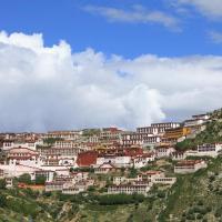 甘丹寺位于拉萨达孜县境内拉萨河南岸海拔3800米的旺波日山上,寺院全称“甘丹朗杰林”,拉萨三大寺之一。甘丹是藏语音译,其意为“兜率天”。甘丹寺是格鲁派六大寺庙中地位最特殊的一座寺庙,由格鲁派创始人宗喀巴大师于1409年亲自筹建的,是格鲁教派的祖寺,历世格鲁派教主甘丹赤巴即居于此寺。