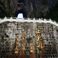 “乘百龙电梯,观张家界美景”--百龙观光电梯位于张家界武陵源世界自然遗产核心景区,以“世界上最高、载重量最大、运行速度最快的全暴露户外观光电梯”三项桂冠独步世界,是从水绕四门跨越万丈绝壁通往袁家界连接天子山等机器凝固的垂直交通工具。