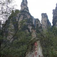 充分利用四日门票,可以分别从武陵源景区和张家界景区,两处正门进入。携程订票的取票点这两处也都很容易找得到。张家界风景区进入途径金鞭溪,沿途有不少大腕题词,我留意了金庸大侠的。走两三百米吧就可以来到黄石寨脚下,现在后山山路在修建,徒步上下都只有前山山路可以走。垂直海拔九百米左右,台阶路挺好走,苔藓植物基本没有。