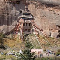 马蹄寺交通很不方便,除了包车别无选择。到了景点耍买大门票,要看主景点三十三洞天还要再买票。整个景区也只有三十三洞天石窟还可一观,但修缮不是按照修旧如旧的基调,搞得太新太假。石窟顶部上下只开一条路,人少还可等等,人多就堵住了,管理上缺陷多多。似乎感觉名不符实,与麦积山相比就差很多,更不要说莫高窟了。