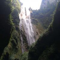 通灵大峡谷景美人少,好多人没走到瀑布跟前远望下就走了,其实瀑布后面有个洞,可以穿过瀑布,太壮观了,感觉排山倒海狂泻而下,要把人带走,不由心生恐惧。回程从溶洞里顺着地下河穿过,很好的景点,推荐。