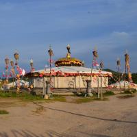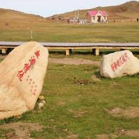 去年八月去的乌兰布统影视基地,这里摄制了60余部影视剧,其中《还珠格格》、《康熙王朝》、《射雕英雄传》、《汉武大帝》等10余部大片的大部分场景都是在这里拍摄的,是中外闻名的影视拍摄基地,影视基地每拍一部影视剧就将一块石碑放倒在草原上,很多游客都围在石碑旁数着影视剧的名称并拍照留念。