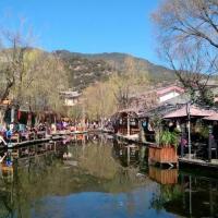 束河古镇又名龙泉村,纳西语称“绍坞”,位于 丽江 古城的 西北 部,当年茶马古道时便是重要的驿站。古镇依山傍水,幽静古朴,屋舍错落有致,巷道间流水潺潺,后山是 玉龙雪山 的余脉,是山、水、人和谐相处相生的美丽胜境。