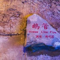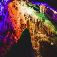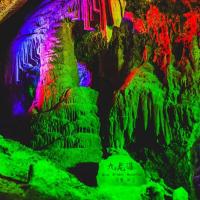 地下大峡谷溶洞里头太凉了,而且很狭窄,人又多,基本上都是走马观花。 形状各异的钟乳石,用灯光一照,五颜六色。