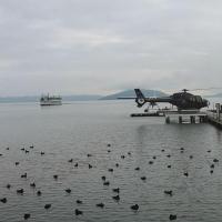 我们住在罗托鲁阿湖车程十几分钟的汽车旅馆,一早起来看到天空有美丽的霞光,急忙叫先生开车过去。湖里有野鸭,天鹅,海鸥,还有几架飞机停在水面上,应该是直升机观光项目。因为罗托鲁瓦有丰富的地热资源,所以当天晚上继续住在这里,泡个热水澡,解去一身疲乏。