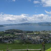 罗托鲁瓦在毛利语当中就是第二个湖泊的意思,罗托鲁瓦湖也就是新西兰北岛中规模仅次于陶波湖的第二大湖。欣赏罗托鲁瓦湖最好的地点就是在旁边的山上,能够看到湖心的一个小岛,在山顶喝着咖啡,晒着暖暖的阳光,看着山坡上悠闲吃草的牛啊、羊啊、鹿啊,悠闲的度假,原来就是这么回事儿啊!