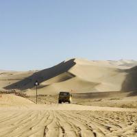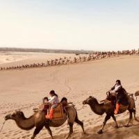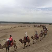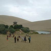 从敦煌去景鸣沙山点交通方便,3路公交终点即到,门票120元(60一70岁半价),性价比可以。进景点后是否租用鞋套、及坐电瓶车自便,本人均未釆用,因多次去过沙漠穿鞋套反显笨拙。进景区后化100元骑骆驼是不错的选择,4公里路有意思,一直到月牙泉下鞍,也省了10元电瓶车钱。景色不错,出景点向市区一公里