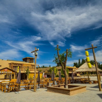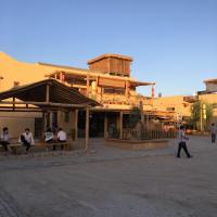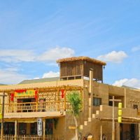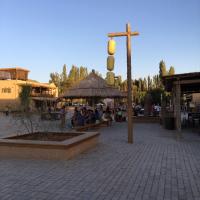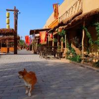 月牙泉小镇一看就是为了旅游而造的。 离鸣沙山只有10分钟的距离,蛮适合旅游居住的。 我们客栈就在小镇里。小镇有玩沙子的地方,也有吃饭的地方,反正挺全面的。 但是餐馆价格都不算便宜,旅游城市大家懂的哦~