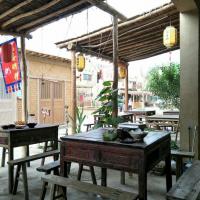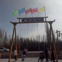 我们到了月牙泉小镇,虽说这是一个后期修建的镇子,但好在美食、住宿、购物这儿都有,建筑也颇有老港片《新龙门客栈》的味道,重点是从镇口走路到鸣沙山月牙泉只要10分钟!! 游多多是去哪儿上性价比较高且评价不错的一家客栈,进去晃荡了一圈,还不错,客栈有两个小院,院内可以玩沙,如果天气好,晚上看星星应该是很棒的!除了前台让我们等了很久才入住以外,其他都还算满意。