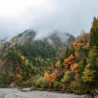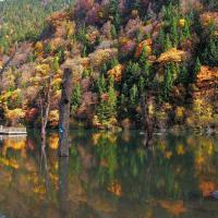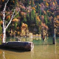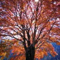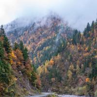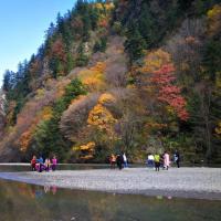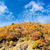 奶子沟的树种主要由桦树、松树、柏树、枫树和各种乔木组成,在蓝天白云下的树叶呈现出紫红、粉红、橘红、金红、深黄、草绿、黄绿等等颜色,色彩斑斓,美轮美唤。彩林的美景只有你走到了那里才能感受到,谁想要找到合适的词来形容彩林的美都会感到词汇的匮乏和苍白。如果你没去过,明年去感受感受吧,它会带给你意想不到的震撼和惊喜。