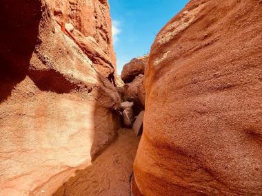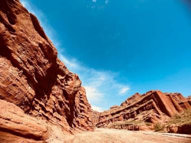 天山神秘峡谷海拔1600米,最高山峰海拔2048米。由红褐色山体组成,当地人称之为克孜利亚(维吾尔语,意为“红色的山...