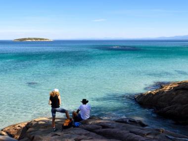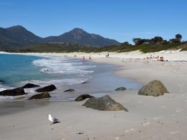 酒杯湾位于东海岸半岛的参差错落的粉红色与灰色大理石峰赫胥斯山(Hazards),是菲欣纳国家公园(Freycinet...