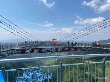 天空悬廊位于梦幻奥陶纪主题乐园内,结构呈现“A”字形,建造在百米高的悬崖峭壁上,全长200米,向外悬挑近70米。它的...