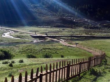 洛绒牛场被“日松贡布”三座神山环绕,贡嘎河从草场穿梭,林间溪流潺潺,与牧场木屋交相辉映,构成了一幅原始而又迷人的景色...