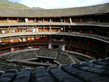 怀远楼建于1905-1909年,是目前建筑工艺最精美、保护最好的双环圆形土楼。楼高四层13米,直径38米,每层34间...