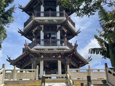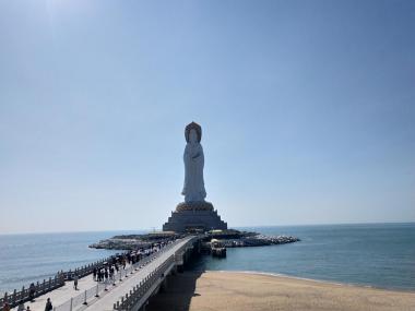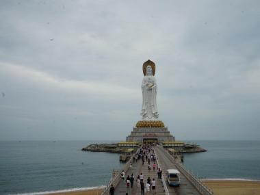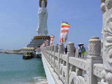 南山海上观音是座108米高的观音菩萨圣像,位于南山寺前的海上金刚洲(观音岛)上,其圣象为正观音的一体化三尊造型,脚踏...