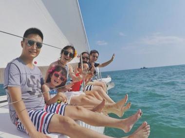 在三亚鸿州码头帆船港,扬帆出海,在蓝天白云下,听最纯粹的海浪声,帆船是集娱乐性、观赏性、休闲性于一体的海上运动项目。...