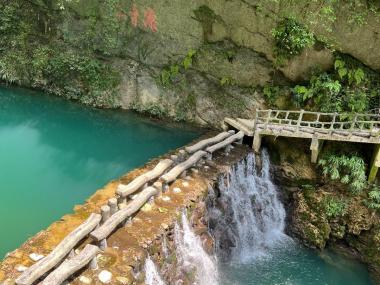 天生桥景区位于神农架南部的老君山北麓,以“奇谭”“奇瀑”“奇洞”著称。发源于老君山的黄岩河流经此地,经过亿万年地表水...