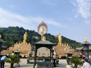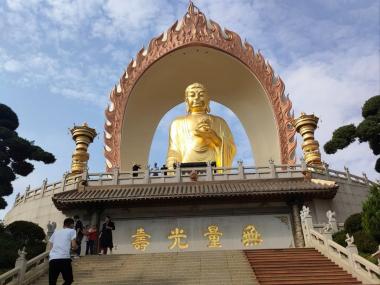 世界较高的阿弥陀佛铜像——48米高的东林大佛,这座金灿灿的大佛屹立在高山之巅,48米高的东林大佛整体造型吸收了龙门石...
