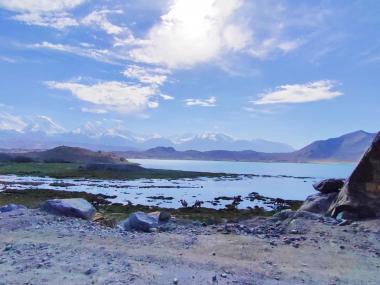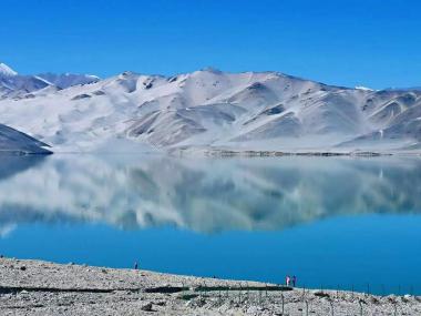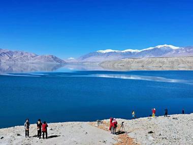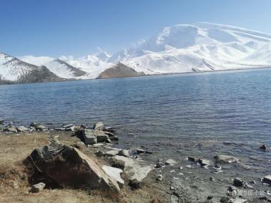 喀拉库勒湖位于“冰川之父”幕士塔格峰脚下,因湖水深邃幽黯,故名“喀拉库勒”,柯尔克孜语意为黑湖。湖水在阳光的照耀下,...