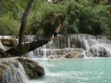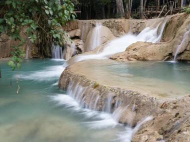 官西瀑布这个藏身茂密的热带雨林里的多层瀑布,从山峰上倾泻而下,每一层都有一处积成浅潭,形成一个个清幽的翠绿的水潭,像...