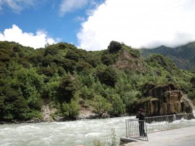 “中流砥柱”位于尼洋河中游,其所处在的位置山势险峻,陡象横生。石柱上长着一棵松树,并有多种植被装点,远处眺望,甚为壮...
