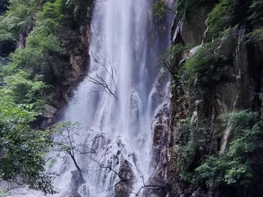 斗母瀑布气势宏大,从斗母奇峰倾泻而下,垂直落差八十余米,堪称陕西第一瀑...