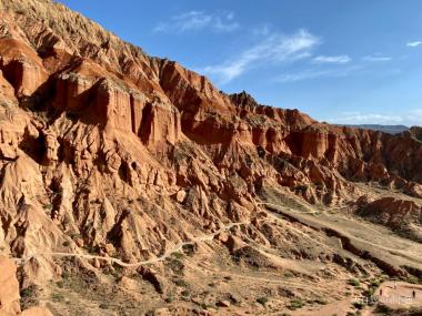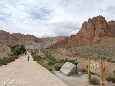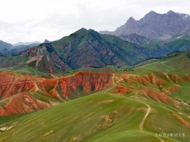 阿什贡峡的丹霞地貌,形成于1亿2千万年前,峡谷地处黄河北岸,两侧山峦夹峙,高耸入云,红的火红,青的靛青。山崖经亿万年...