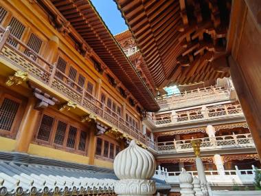 静安寺地处上海市繁华的静安商区,交通便利。周围高楼林立,与清修的寺庙形成了鲜明的对比。寺院的建筑风格融合藏式寺庙,大...