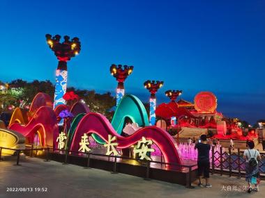 大唐不夜城的中轴景观大道是一条约1500米横贯南北的中央雕塑景观步行街,其上分布着盛世帝王、历史人物、英雄故事等九组...