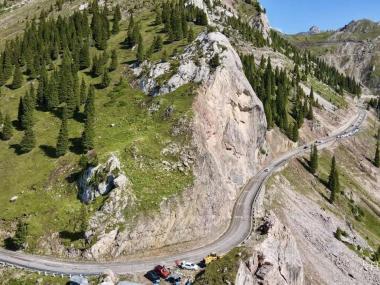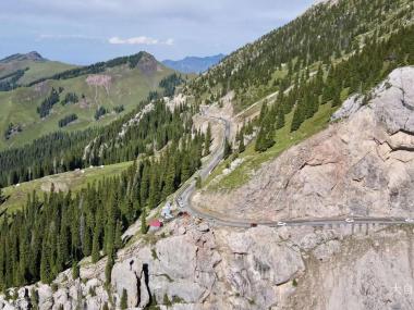 伊昭公路是古代丝绸之路“弓月道”的其中一段,其道路险峻异常,行走其间仿佛穿行在白云之上,公路傍河而建,路边是缓缓的绿...