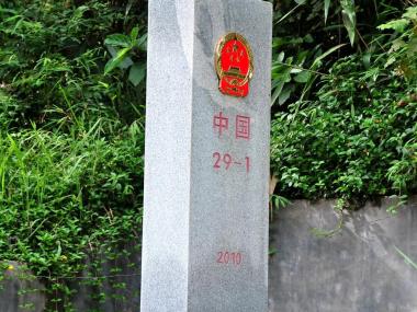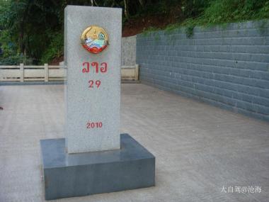 中国和老挝边境的界碑...