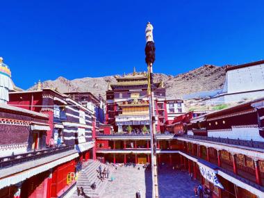 宗山小布达拉宫位于日喀则市区北面的山上,因外观酷似布达拉宫而得名。从远处看,“小布达拉宫”红白相间的墙面在阳光的照耀...