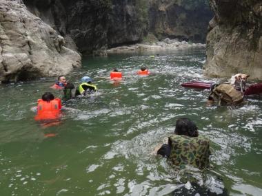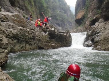 湘西猛洞河漂流的起点在“哈妮宫”,终点在牛路河,漂流的水路长17公里。从哈妮宫乘着橡皮艇顺流而下,经山脚岩、鸡笼门、...
