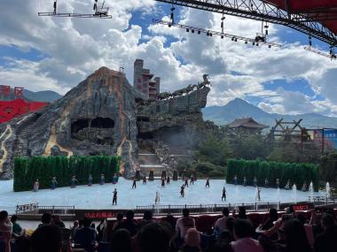 丽江千古情景区是一座活着的茶马古城位于玉龙雪山脚下,景区内茶马古街、那措海、雪山沙滩、民族村落等主题区一步一景展现了...