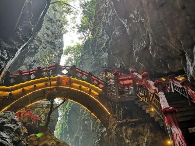 张家界朝阳地缝景区(原张家界一线天),景区内恒温19℃,垂直深度近200米,全长5公里,是世界上最长的“一线天”奇观...