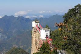 塔云山是驰名秦、鄂、川、豫等地的道教名山,主峰金顶海拔1665.8米,形似宝塔,直耸云端,素有“金顶刺青天,松海云雾间”之美誉。其道教古建筑群建于明正德年间(1505—1521),由一馆、一塔、一庙、一堂、九殿组成,风格古朴而清雅。置身金顶,流云绕膝,松涛阵阵,香风扑面,犹在天堂。