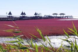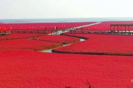 盘锦红海滩位于辽宁省盘锦市。红海滩以全球保存得最完好、规模最大的湿地资源为背景,以举世罕见的红海滩、世界最大的芦苇荡为依托,包括苇海寻踪、小岛闲情、踏霞漫步、岁月小栈、油田观景、廊桥爱梦等步道和景点。