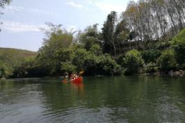 南腊河野趣漂流度假区,位于勐腊县城东郊7公里的曼龙勒傣族特色村寨边,是以趣味性、体验性、刺激性为主的水上运动和户外运动项目,包括皮划艇漂流、轮胎漂流、自由跳水、水上跳床等,还有特色的傣味烧烤,傣味餐馆。