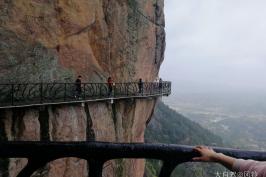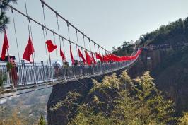 石牛寨玻璃桥,也称为“好汉桥”,长约300米,垂直高度达180米,相当于四五十层楼房的高度,历经四年的构思与两年艰苦工程的改造于2015年国庆前夕正式对游客开放,是国内首座高空全透明玻璃桥,也是目前国内跨度最大,垂直高度最高的玻璃桥。 这座国内首座投入使用的全透明高空玻璃桥,风和日丽之时,踏在玻璃桥上,石牛寨峡谷裂隙尽收眼底,行走其上彷如御风而行,惊险无比;云深雾重之际,桥上悬空赏景漫步云端,如若“云中跳桥”,置身于峡谷天堑以独特角度感受石牛寨丹霞奇观。