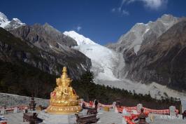 海螺沟四号营地是整个景区内游客能够到达的最高处,海拔达3600米,壮丽的美景可以让你完全忘却高原反应,这里也是藏民供奉神山的地方,有白塔、金身佛像、五色经幡等,为这里增加了浓厚的宗教氛围。