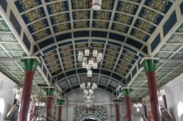磨西古镇建在一个东西北三面绕水环山的倾斜高台平地上,古镇入口岔成两条马路。一条通往古镇,一条穿过新城,绕城后汇合成一圈。石板铺设的古镇上,楼房紧挨着聚集于路两边。古民居实际上已不多见,较具特色的是1918年法国传教士修建的天主教堂。