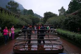 餐后前往峨眉山开山第1大寺庙-万年寺,万年寺是峨眉山规模大、宏伟、历史悠久的开山主寺,参观无粱砖殿,以及峨眉山的镇山之宝——重达62吨的普贤骑六牙大白象,另可欣赏大自然鬼釜神功之作一线天。