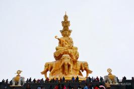 早上从成都驾车出发经成雅乐高速前往乐山,到达峨眉山景区。随后可乘坐索道登至峨眉主峰—金顶(海拔3077)在观景平台观云海、佛光 等自然奇观以及金银铜殿、十方普贤等,在世界大的朝拜中心祈福许愿。