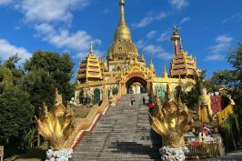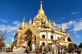 早上早餐后出发,驱车约1.5小时达到芒市勐焕大金塔,大家参观游览。勐焕大金塔是中国第一金佛塔,亚洲第一空心佛塔。中午大家自行午餐后驱车前往瑞丽市一寨两国。一个寨子属于两个国家,一秋荡两国是这里最出名的一个景点。下午返回到瑞丽市,入住酒店口,大家可前往国门游览,中缅街逛逛。