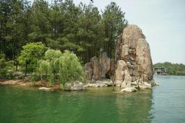 万佛湖风景区围绕着万佛湖,万佛湖地处安徽省舒城县境内,属于国家5A级水利景区。雨后的万佛湖景区空气鲜美,蓝天碧水溶为一体,连片的大山掩映在茂密的植被中,风景秀丽,令人心旷神怡。到万佛湖一是看湖景,湖水清澈,湖中有一座座小岛;二是看水利工程,万佛湖大坝建成于1960年,在三年自然灾害中完全靠百姓手工砌成土坝,非常了不起。