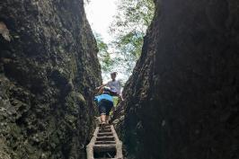 皖西大裂谷位于六安市南边25公里处,原名避王岩,据说因明末清初农民起义军首领张献忠在此作战而得名。整个景区状如三节莲藕,最好玩的便是在峡谷中穿梭攀爬,峡谷两侧峭壁耸立,窄处仅容一人通过,有些地方只是简单地架着垂直铁梯,向上攀爬很有挑战性,