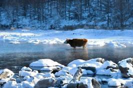 这是一条神奇的小河静静流淌,将近河水寒冬-40℃以下的气温不结冰,形成水花、冰花、水中雪蘑菇等形色各异的雪景供您观赏,水中还生长着水草,河面上冒着腾腾热气,透着夕阳的余辉,流光异彩,极为壮观。小河的水依然自成溪流,人称不冻河。
